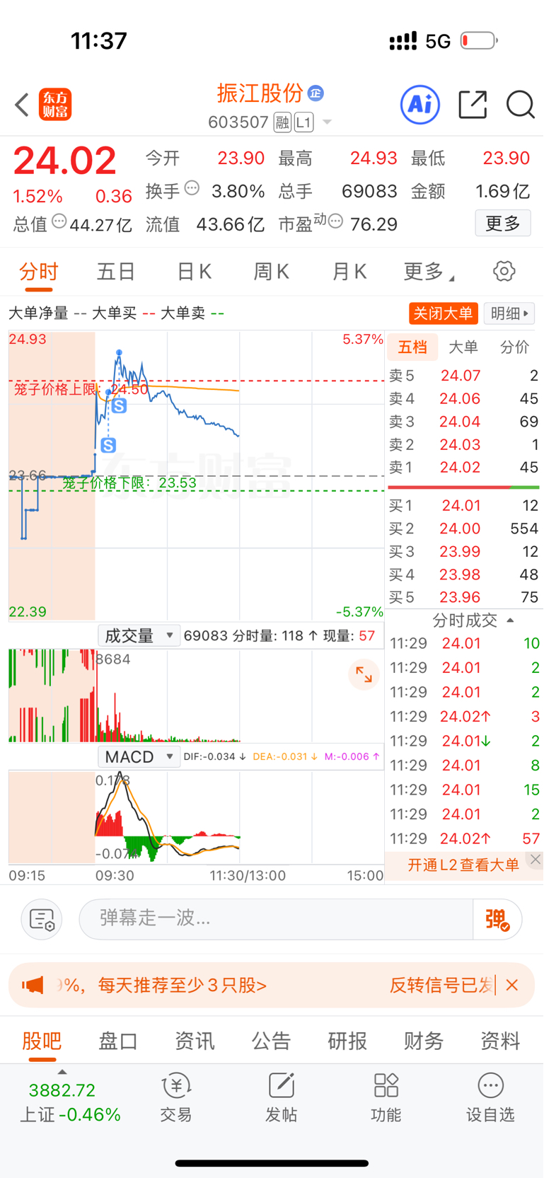 $振江股份(SH603507)$ 这股就这德行,每次冲高减半