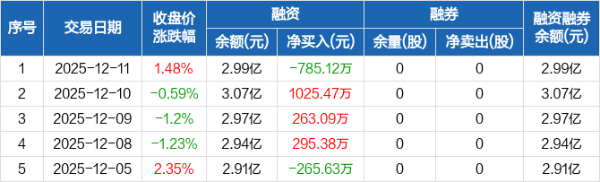 振江股份:融资净偿还785.12万元,融资余额2.99亿元(12-11)