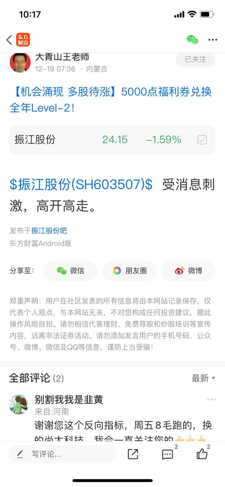 温馨提示: 1.根据《证券法》规定,禁止编造、传播虚假信息或者误导性信息,扰乱证券市场;2.用户在本社区发表的所有资料、言论等仅代表个人观点,与本网站立场无关,不对您构成任何投资建议。用户应基于自己的独立判断,自行决定证券投资并承担相应风险。《东方财富社区管理规定》