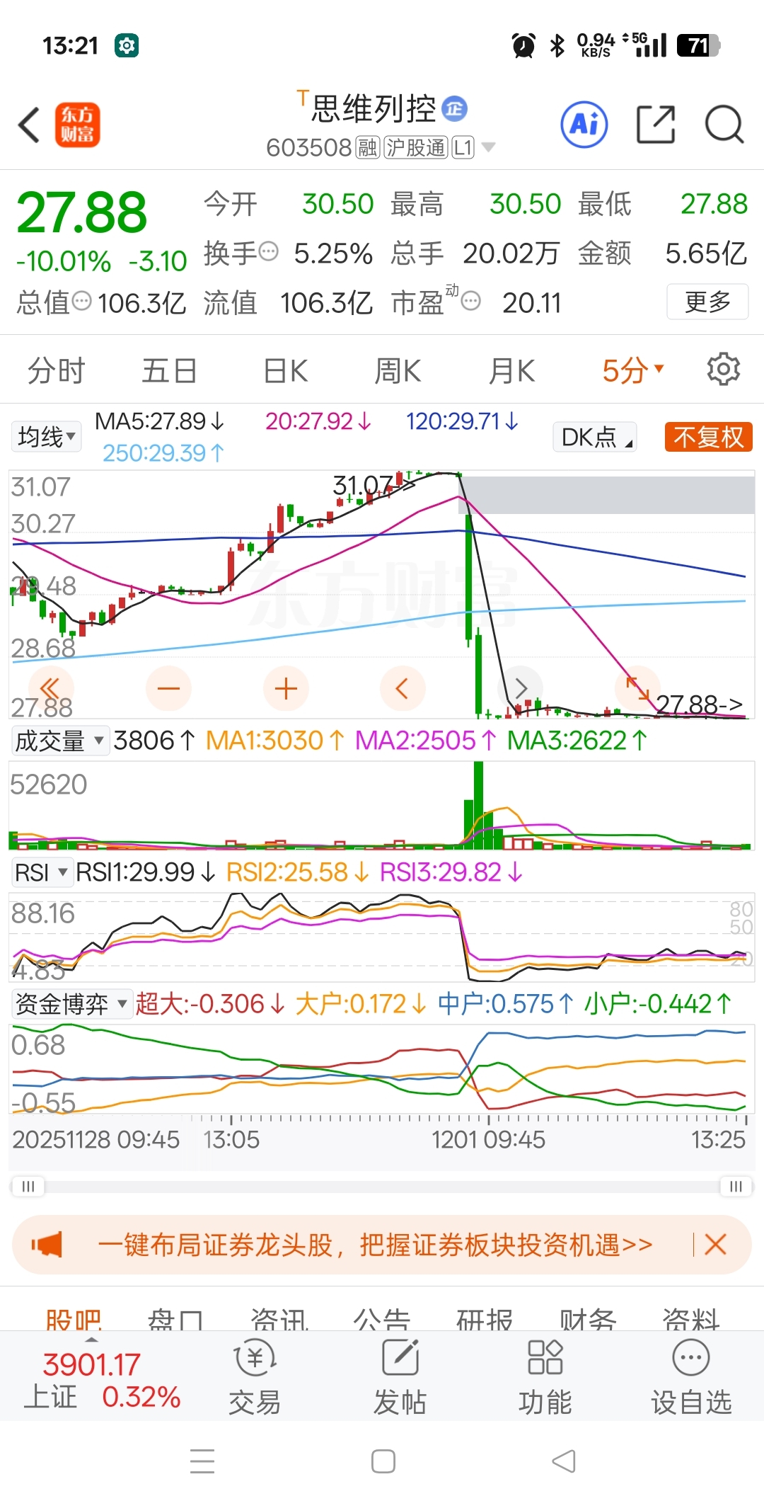 $思维列控(SH603508)$ 五分钟线是不是跟日线相相像。