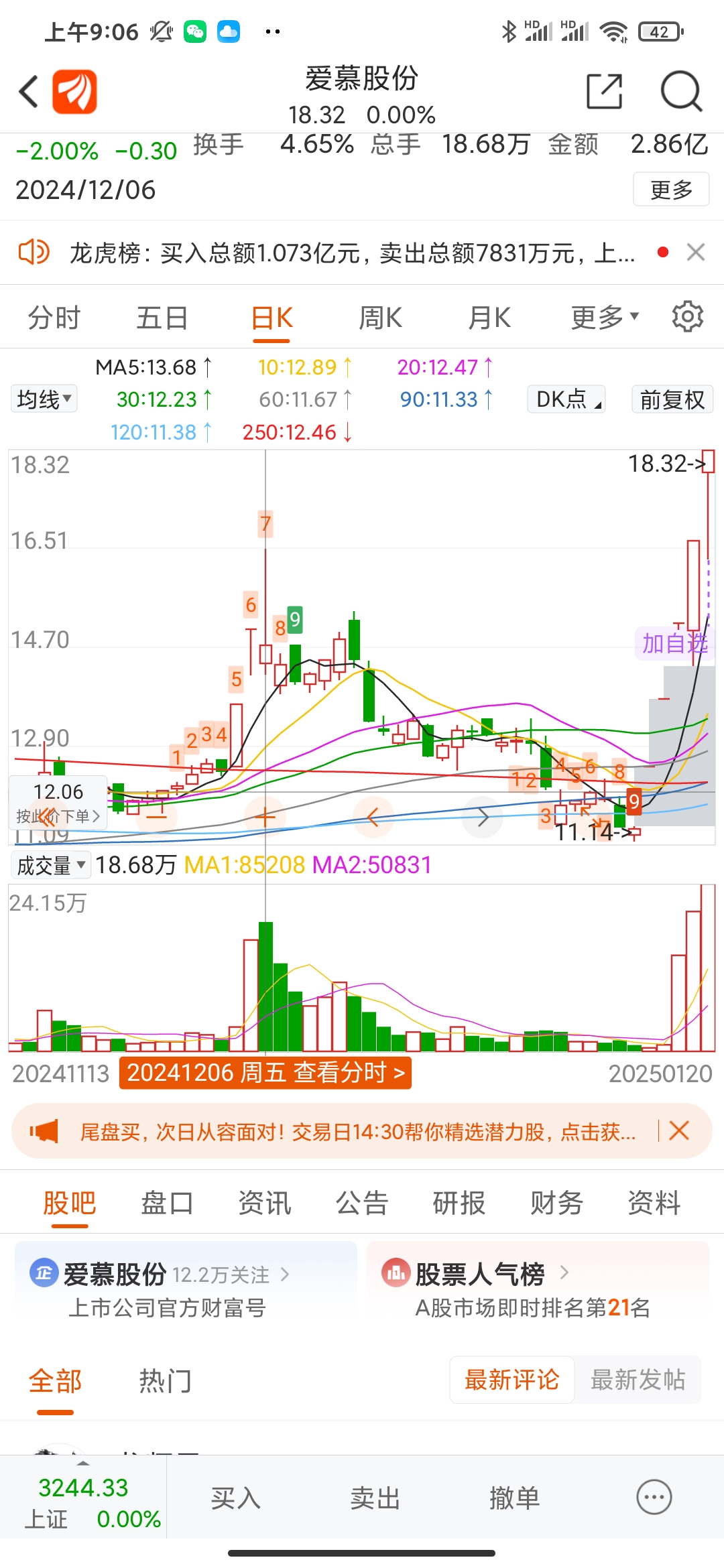 $爱慕股份(SH603511)$ 符合预判