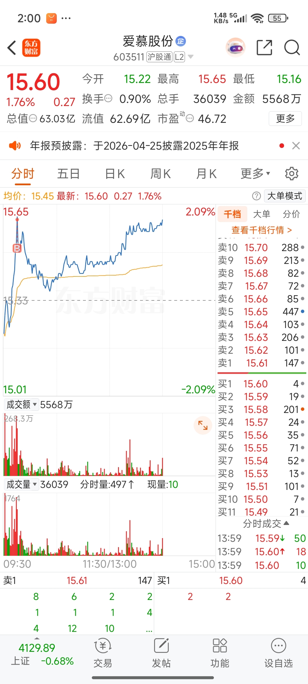 $爱慕股份(SH603511)$ 早上把我挂山尖尖上,心想完了,万万没想到还能拉回来