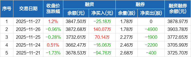 欧普照明:融资净偿还25.18万元,融资余额3847.5万元(11-27)