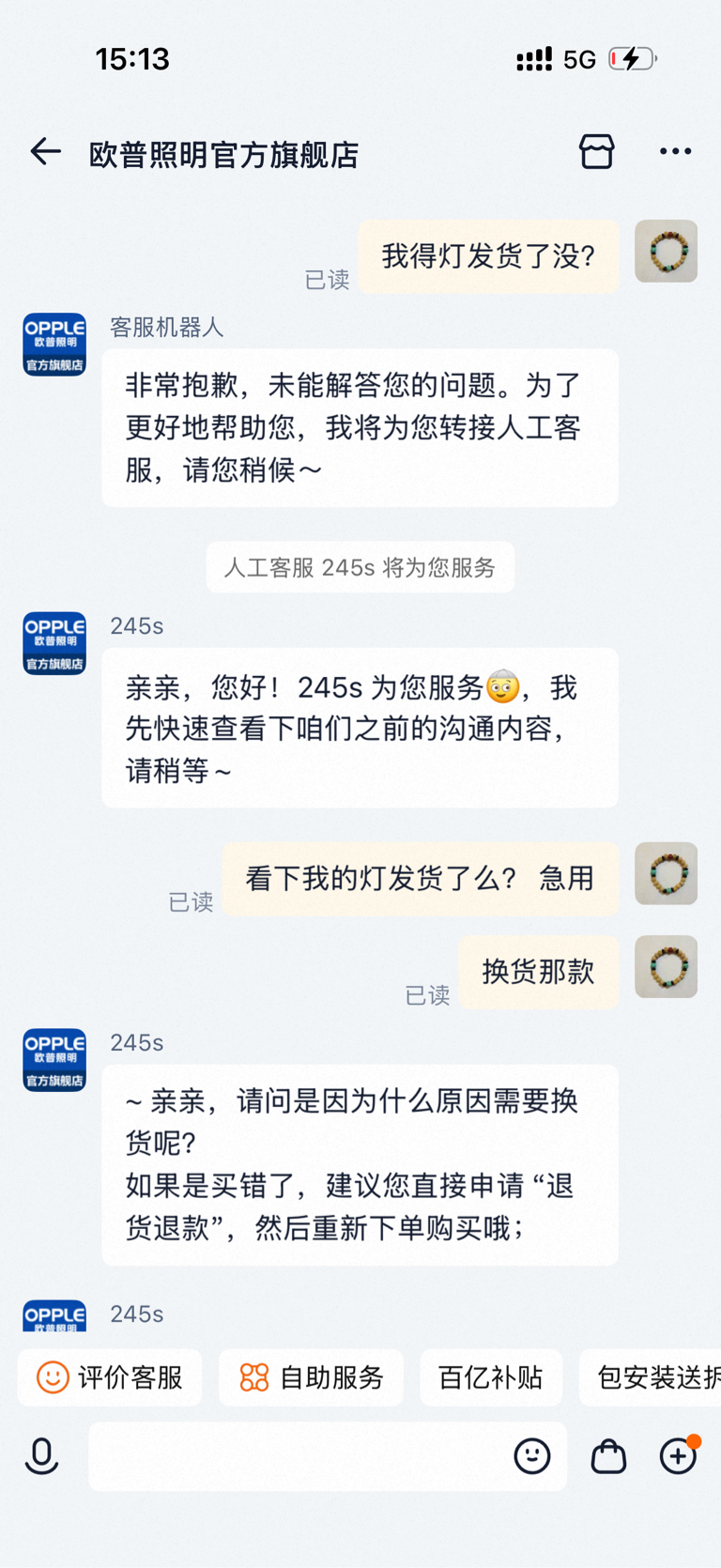 $欧普照明(SH603515)$ 让我失望的公司 换个灯需要等半个月 售后一个接一个的推脱!