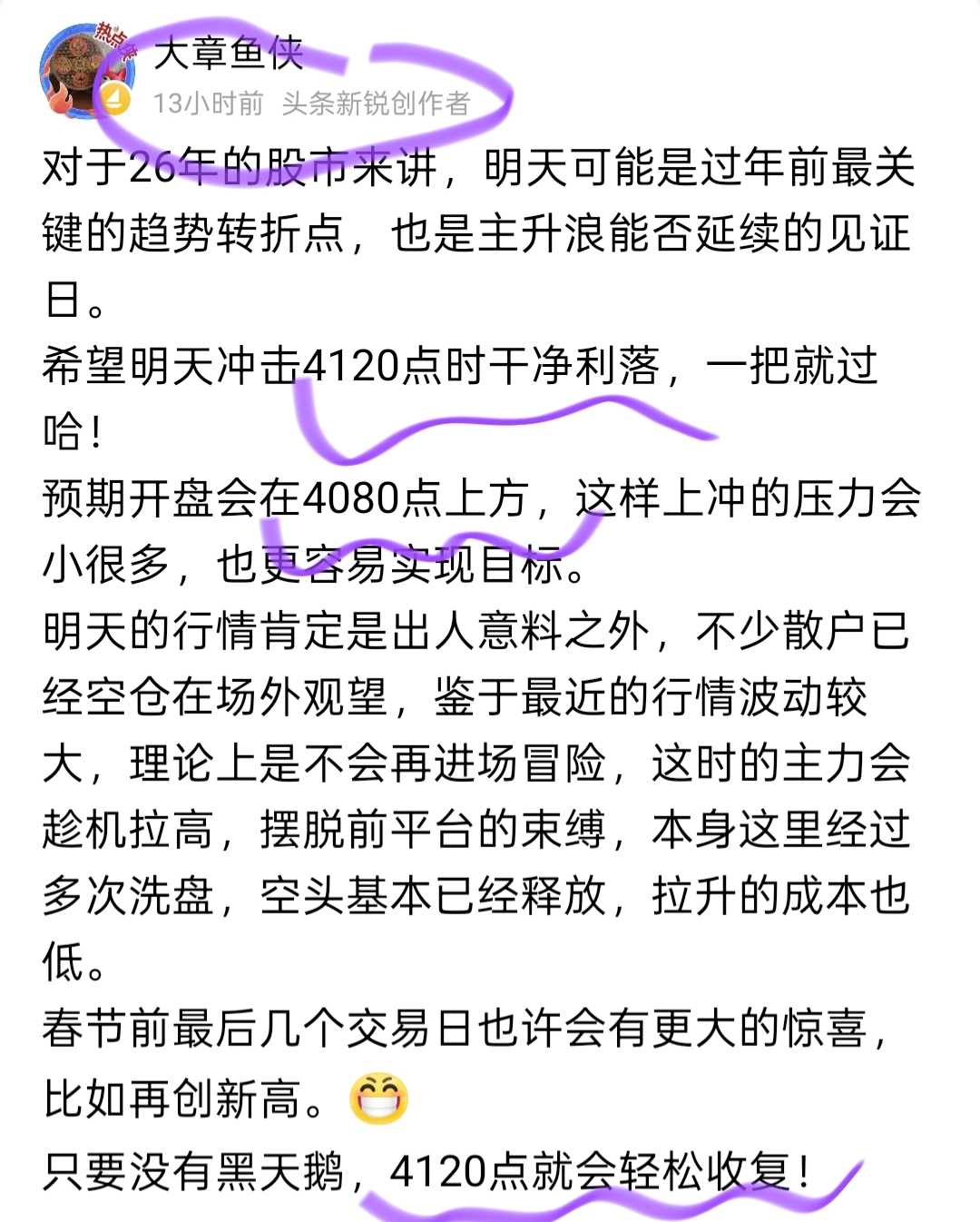 今天指数涨过4120没有问题,个股平均2-3%,强势的可能5-7%!可能4150