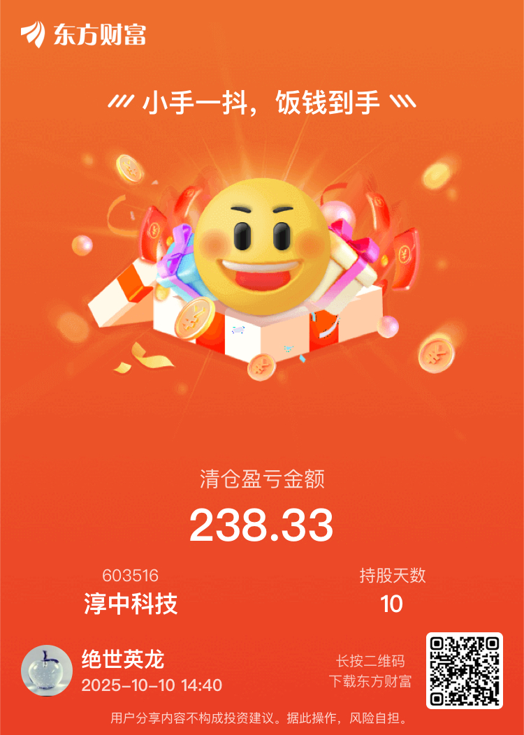 $淳中科技(SH603516)$ 清仓了,落袋为安