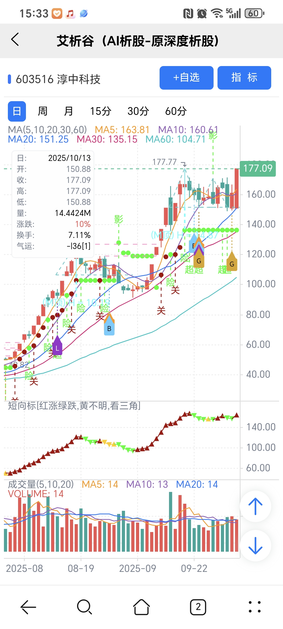 图中A、B、G、L 关注标记是对应AI选股模型当天下午2点多给出。