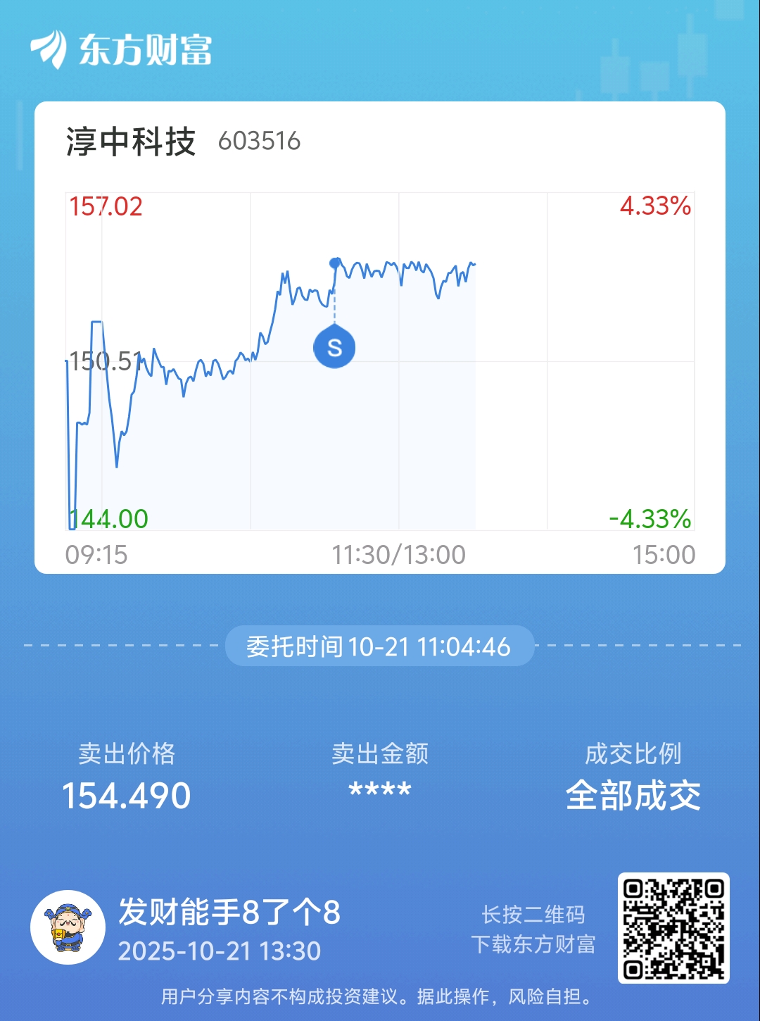 $淳中科技(SH603516)$ 不可惜不后悔