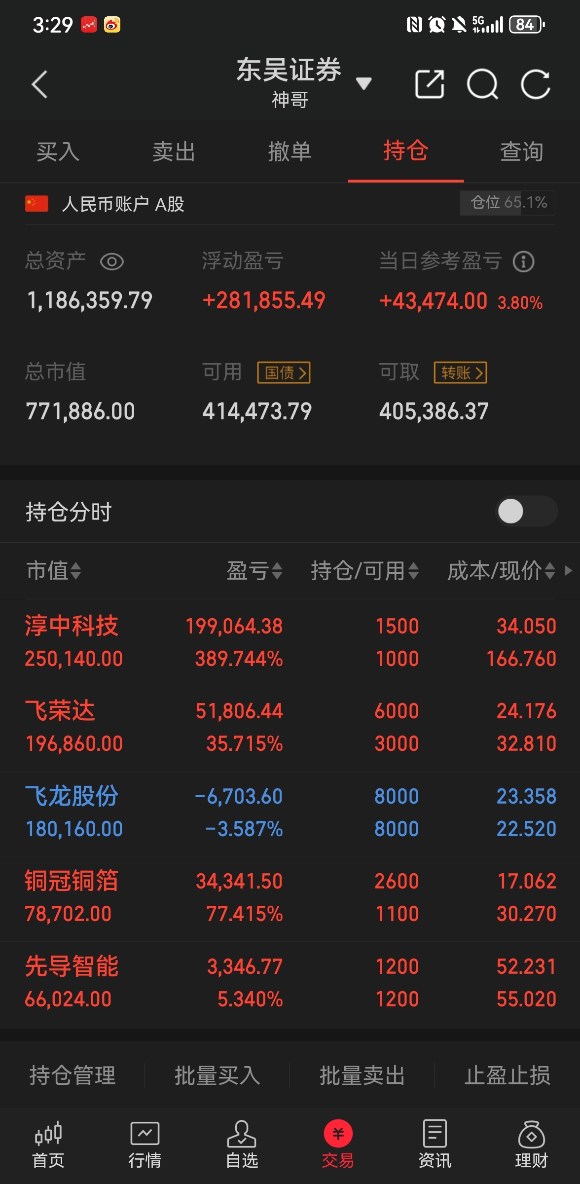 昨天躺平没操作,今天继续做t飞荣达,铜冠,减了昨天加的飞龙。