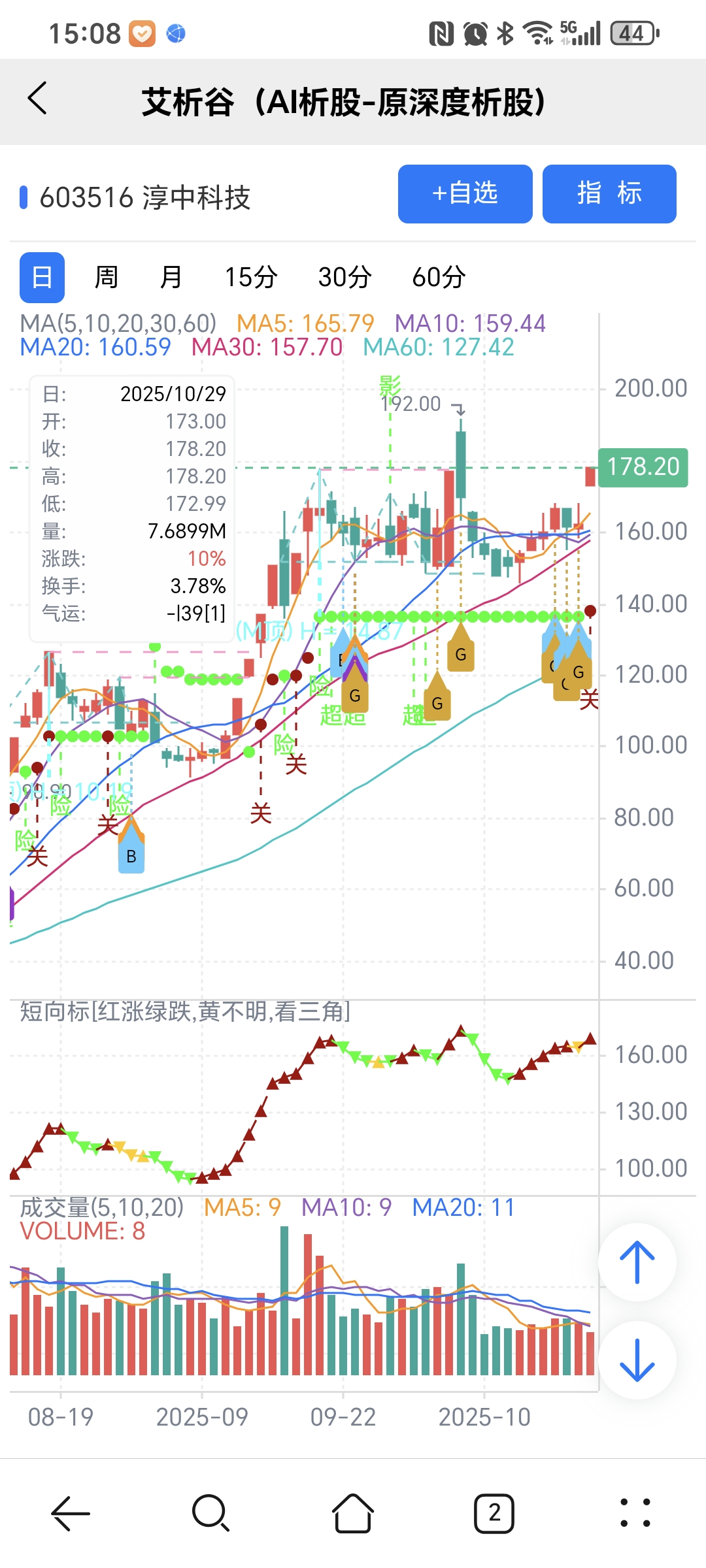 图中A、B、G、L 关注标记是对应AI选股模型当天下午2点多给出。