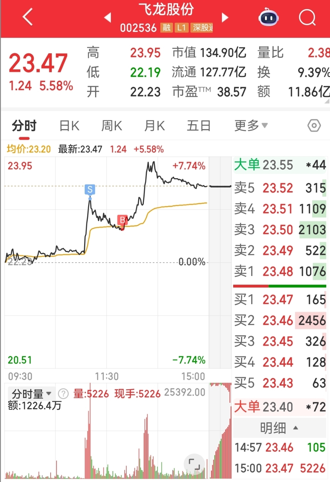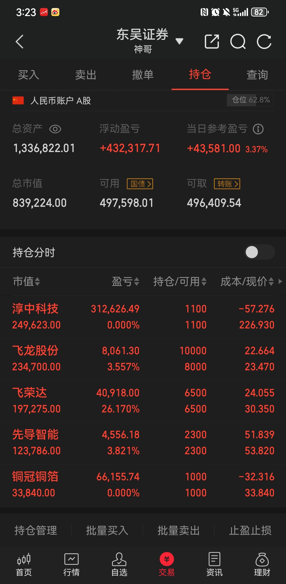 今天只高抛低吸了飞龙股份,其他的没操作$淳中科技(SH603516)$ $飞龙股份(SZ002536)$