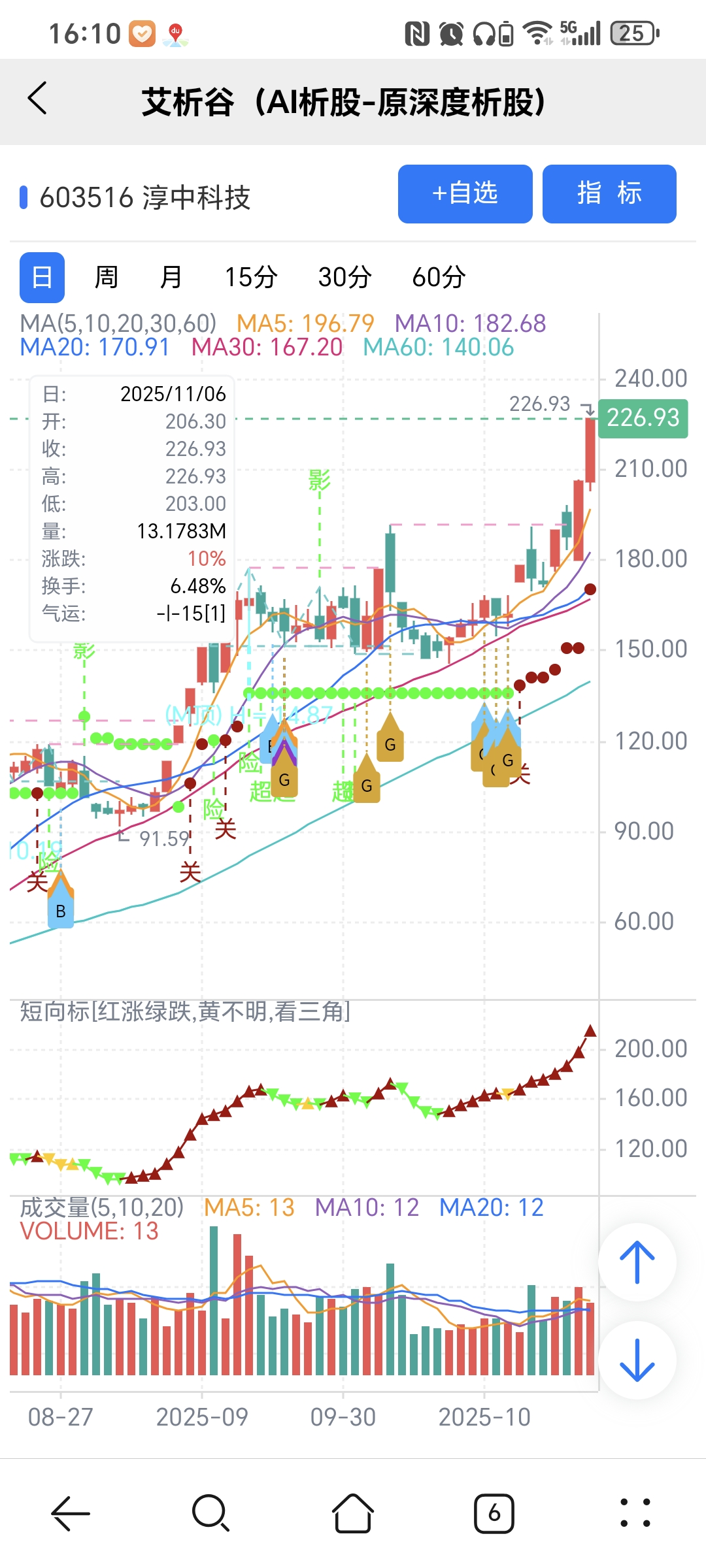 图中A、B、G、L 关注标记是对应AI选股模型当天下午2点多给出。