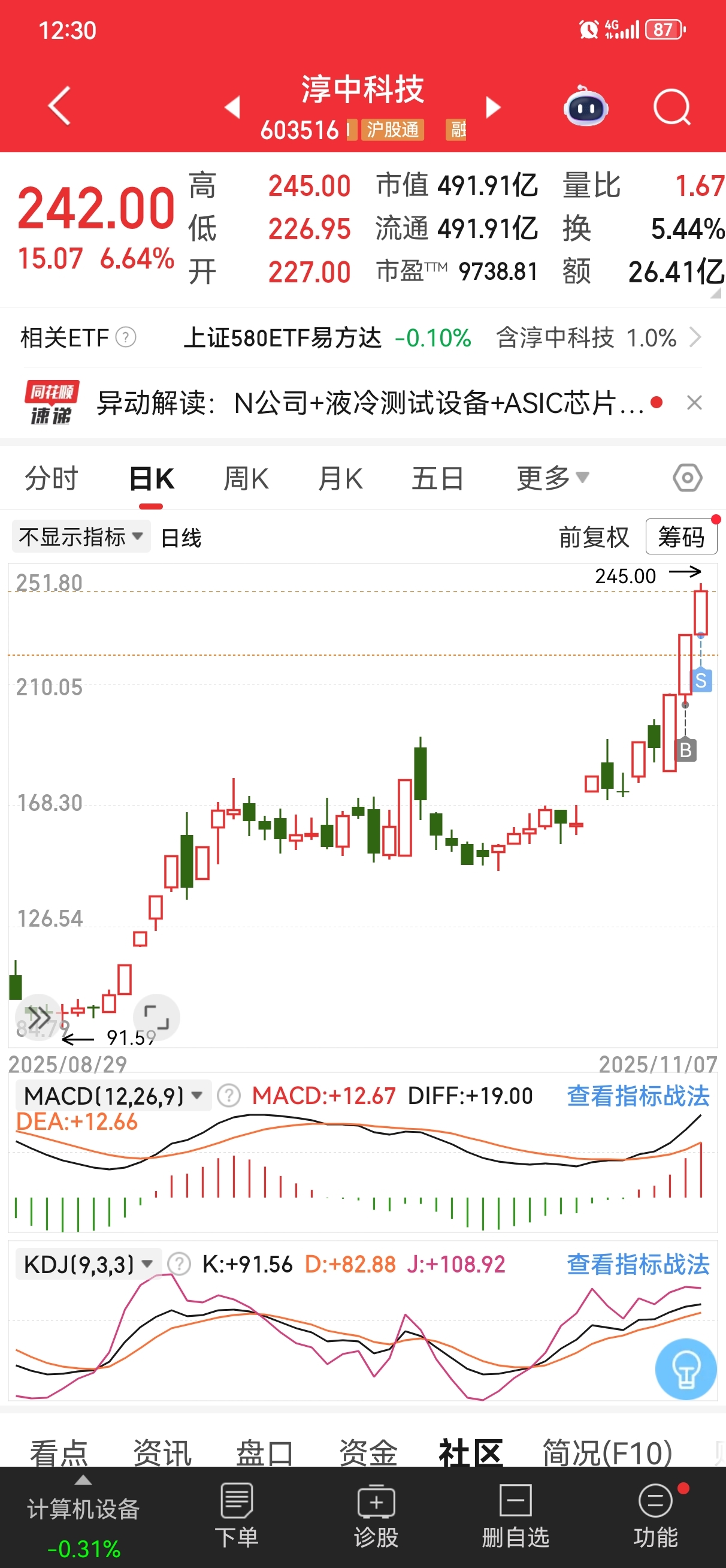 $淳中科技(SH603516)$ 80块想买你不敢买昨天进了点今天出了赚了10个点太强了你