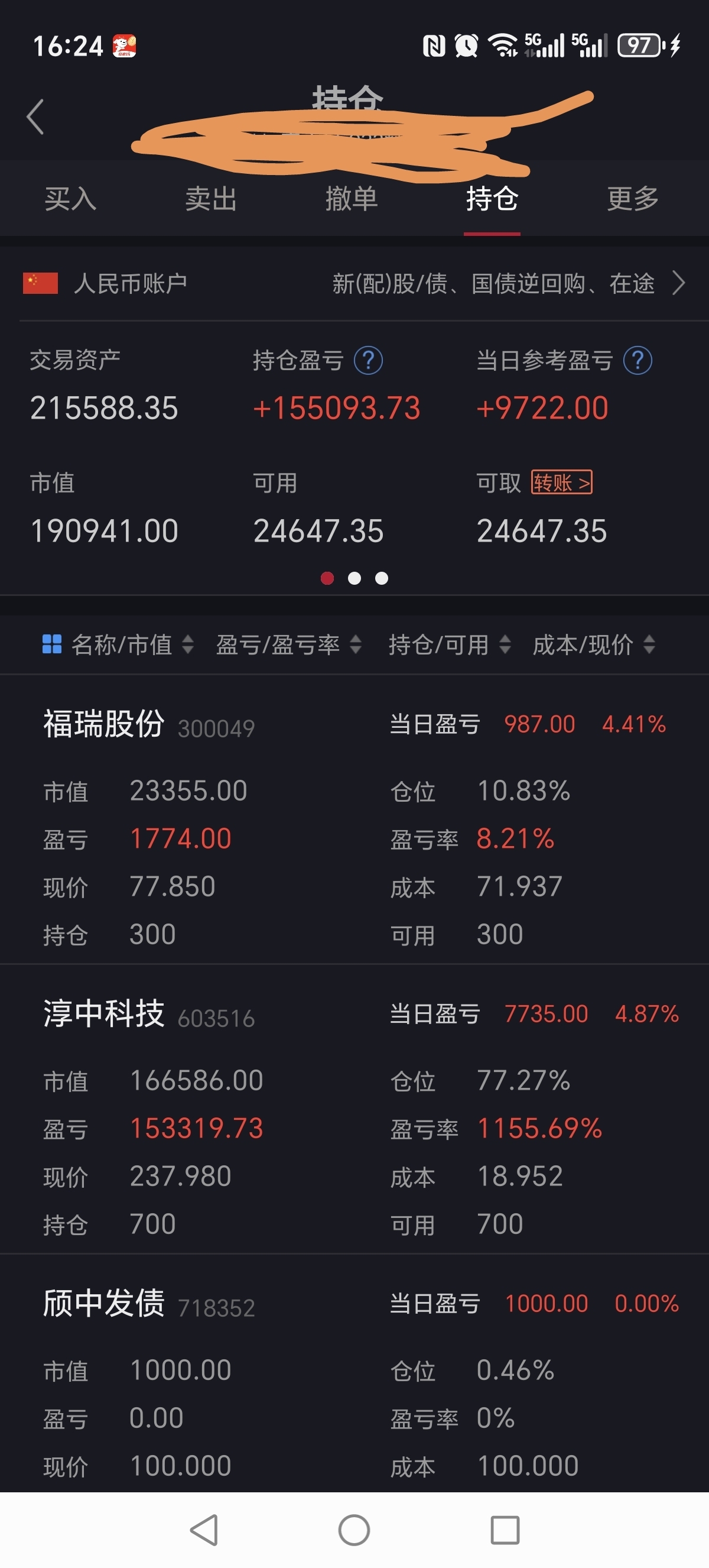 感谢主力,陪你到老,中间踢飞三分之一仓,剩下的坚决不动