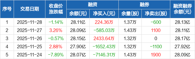 淳中科技:融资净买入224.36万元,融资余额28.11亿元(11-28)