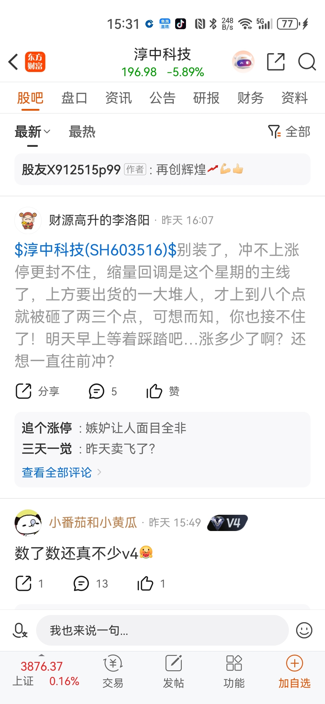 $淳中科技(SH603516)$ 看一下评论的那些小卡拉米…笑到我肚子疼