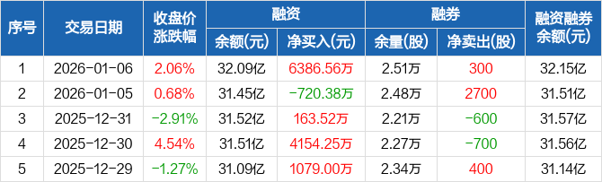 淳中科技:融资净买入6386.56万元,融资余额32.09亿元(01-06)