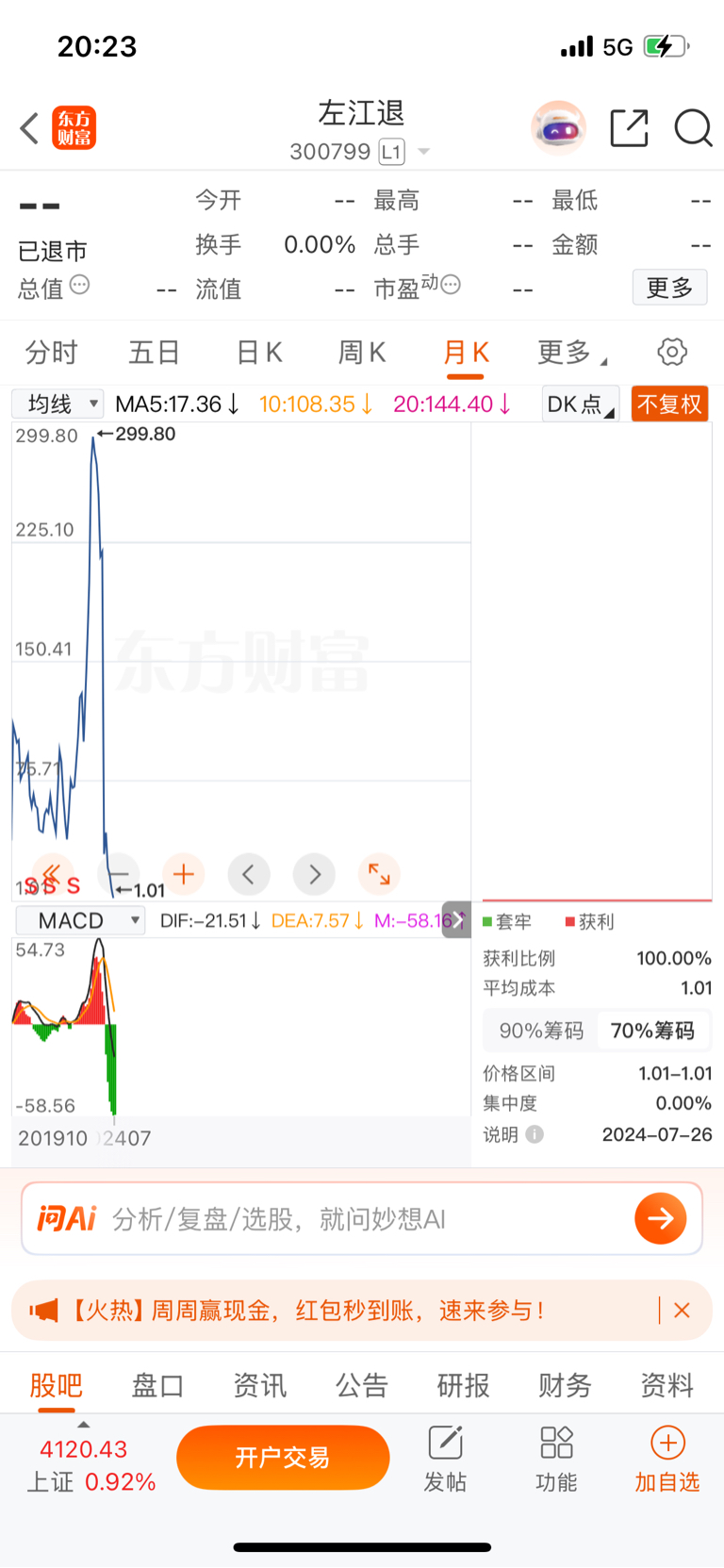 $淳中科技(SH603516)$ $天普股份(SH605255)$ 299跌到1块钱,亏精光一毛不剩
