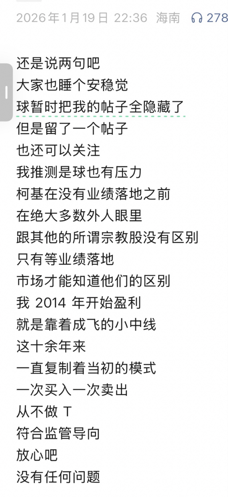 郑重声明:用户在财富号/股吧/博客等社区发表的所有信息(包括但不限于文字、视频、音频、数据及图表)仅代表个人观点,与本网站立场无关,不对您构成任何投资建议,据此操作风险自担。请勿相信代客理财、免费荐股和炒股培训等宣传内容,远离非法证券活动。请勿添加发言用户的手机号码、公众号、微博、微信及QQ等信息,谨防上当受骗!