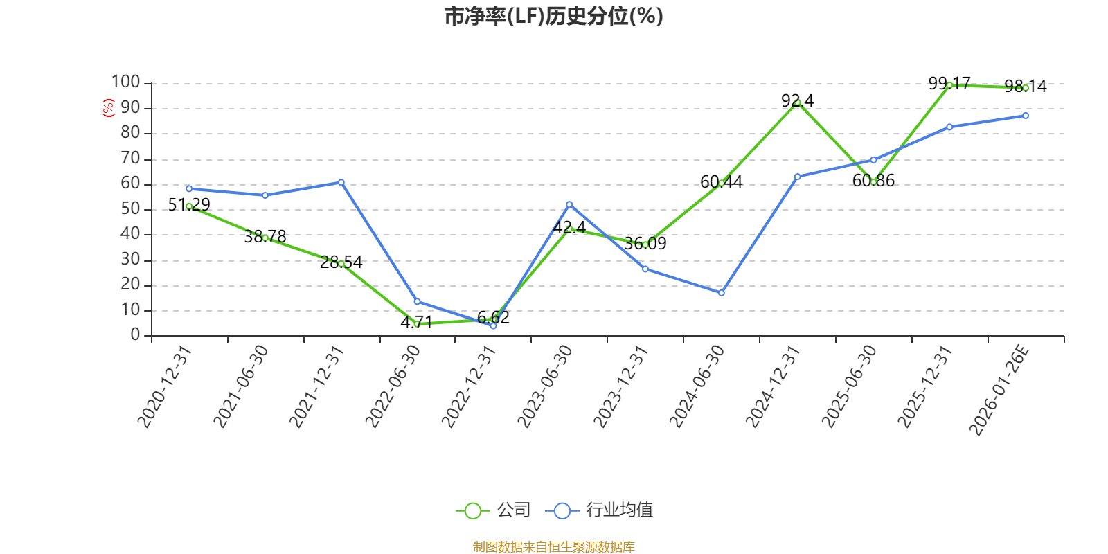市盈率、市净率为负时,不显示当期分位数,会导致折线图中断。