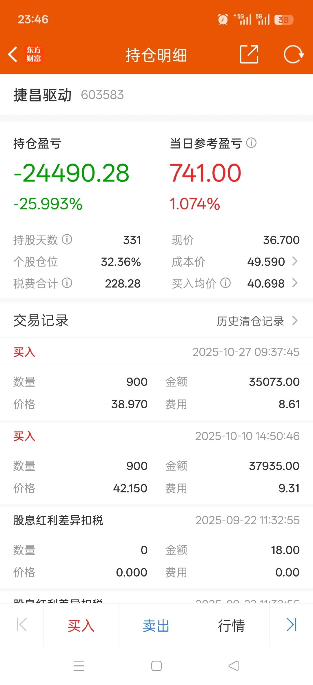 今天有点拉,这个地方有压力,本可以做T的,最后也没有动手,等着吧。捷昌驱动表现还