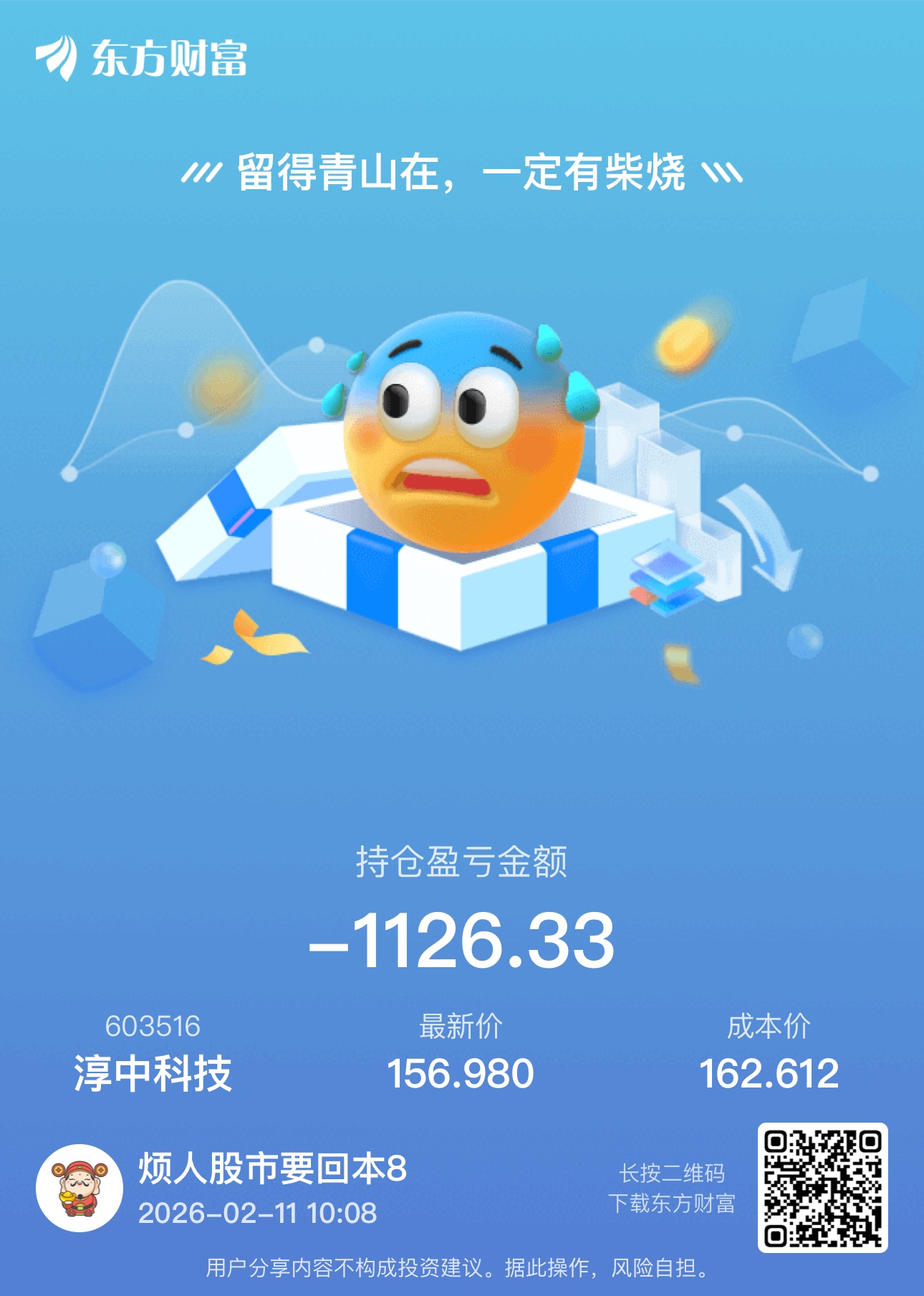 温馨提示: 1.根据《证券法》规定,禁止编造、传播虚假信息或者误导性信息,扰乱证券市场;2.用户在本社区发表的所有资料、言论等仅代表个人观点,与本网站立场无关,不对您构成任何投资建议。用户应基于自己的独立判断,自行决定证券投资并承担相应风险。《东方财富社区管理规定》