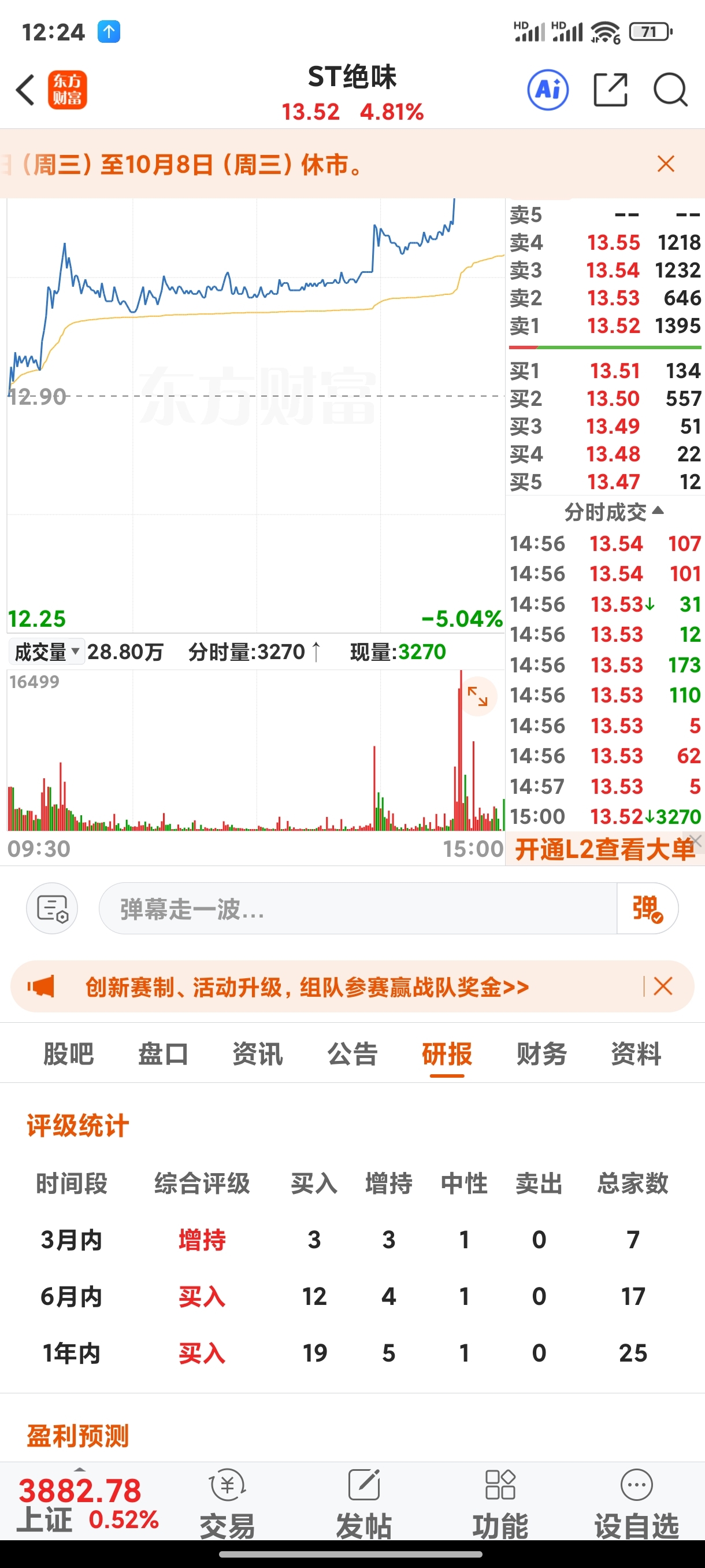 $ST绝味(SH603517)$ 怎么这么多人在增持这个ST,真搞不懂。