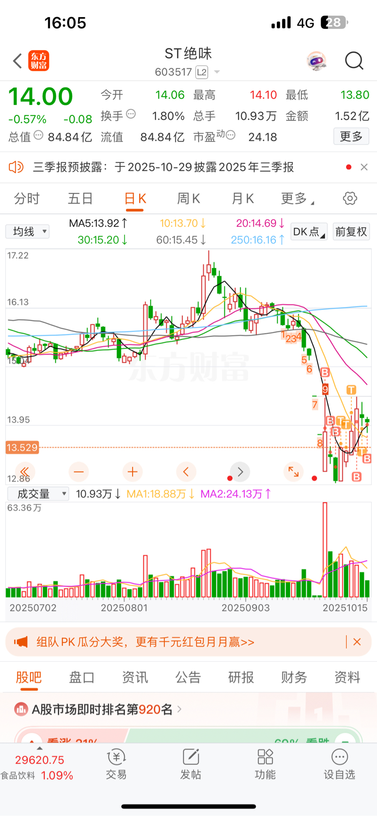 连续建仓8天,仓位3.5层。因为是st仓位已经建完。不到15.4不在操作。