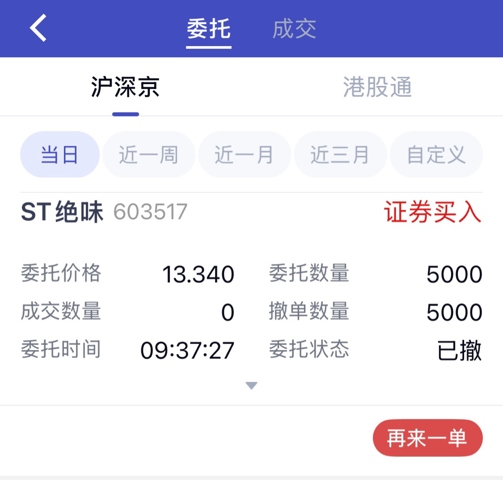 $ST绝味(SH603517)$ 为什么我挂的 13.34 没能成交?