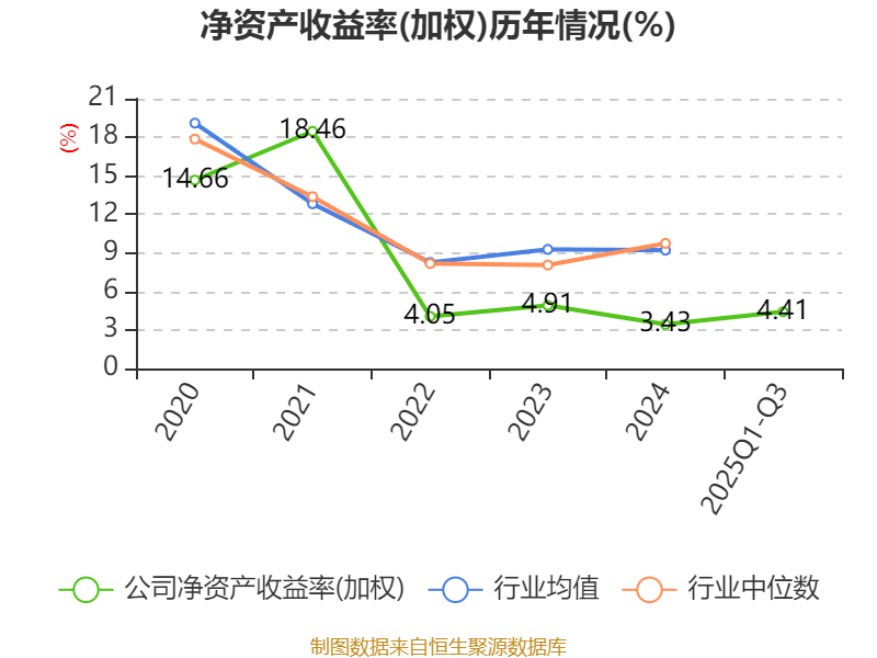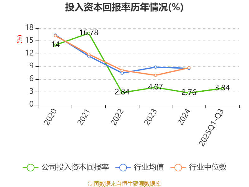 盈利能力方面, 2025年前三季度公司加权平均净资产收益率为4.41%,同比下降1.9个百分点。公司2025年前三季度投入资本回报率为3.84%,较上年同期下降1.66个百分点。