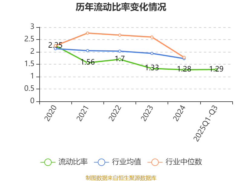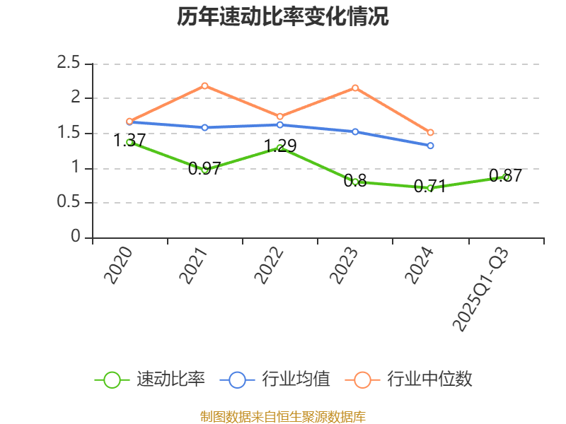 2025年前三季度,公司流动比率为1.29,速动比率为0.87。