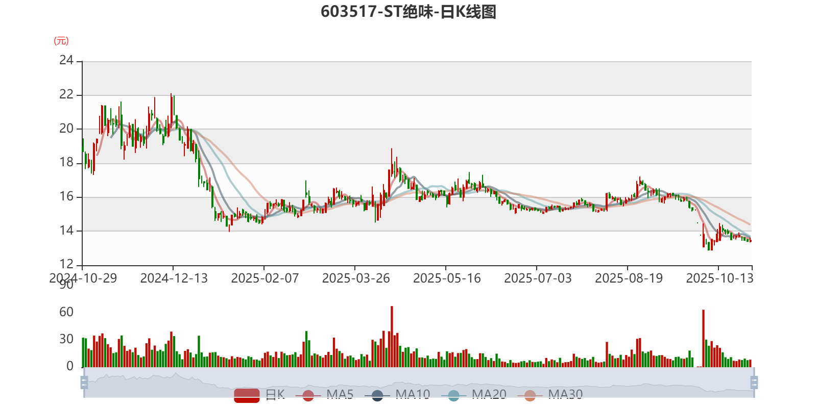 以10月28日收盘价计算,ST绝味目前市盈率(TTM)约为118.33倍,市净率(LF)约1.28倍,市销率(TTM)约1.48倍。