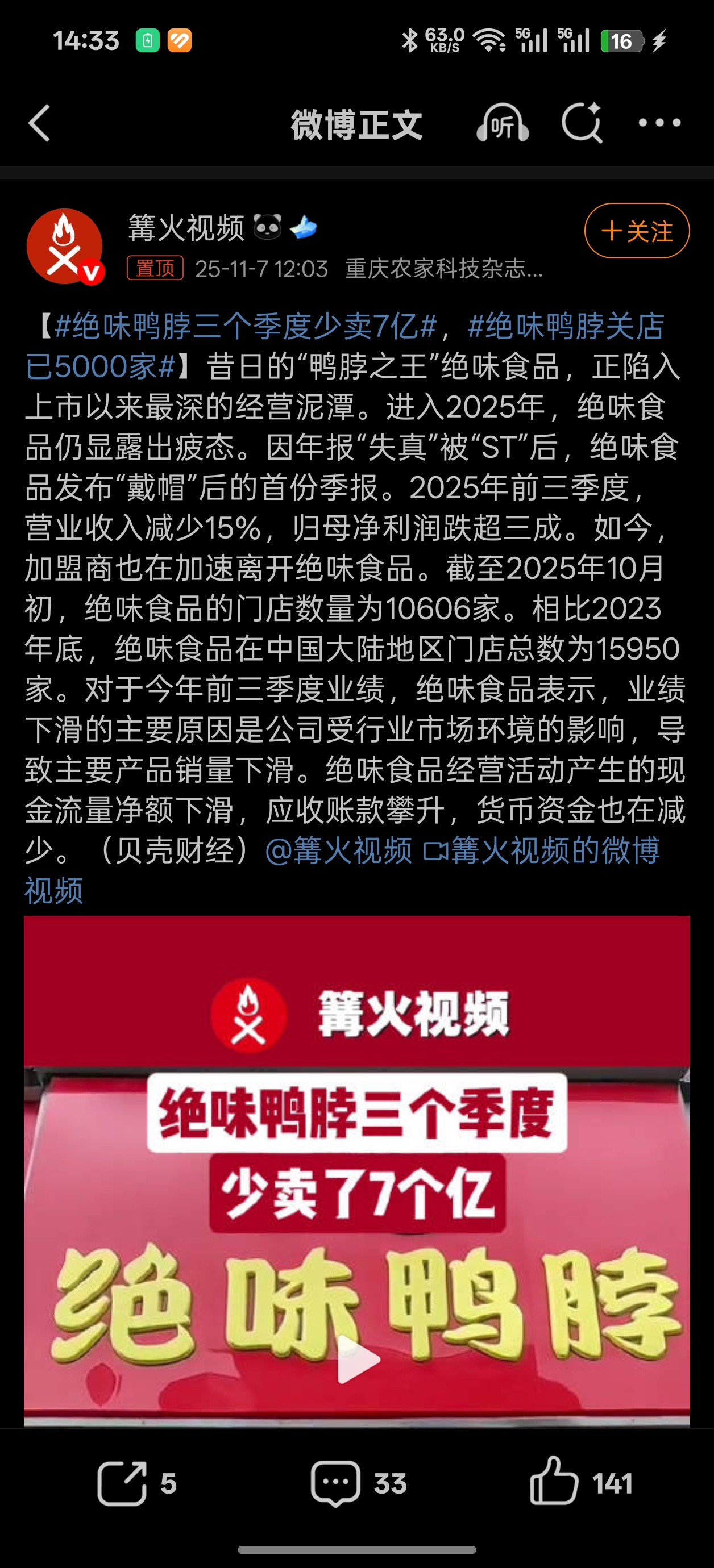$ST绝味(SH603517)$ 出坏消息了,是不是意味着物极必反,下周一定要加仓干,主力要拉了