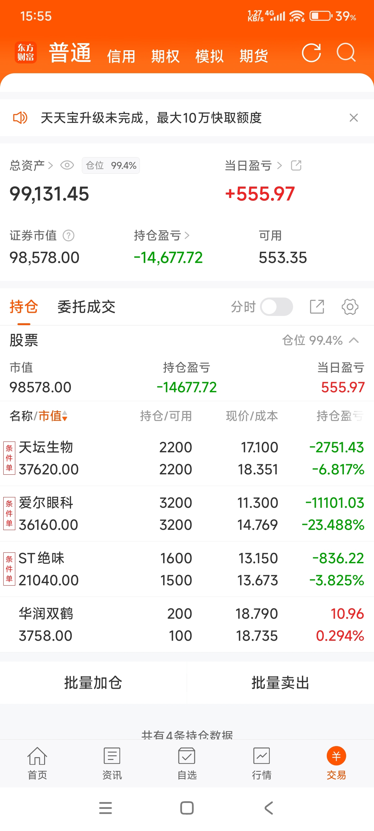 $ST绝味(SH603517)$ $爱尔眼科(SZ300015)$ $天坛生物(SH600161)$ 目标二十万第10天,