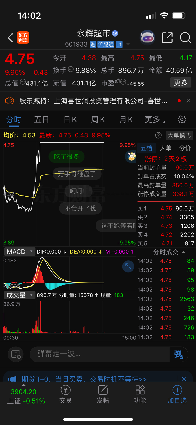 $ST绝味(SH603517)$ 永辉二连板了,哈哈
