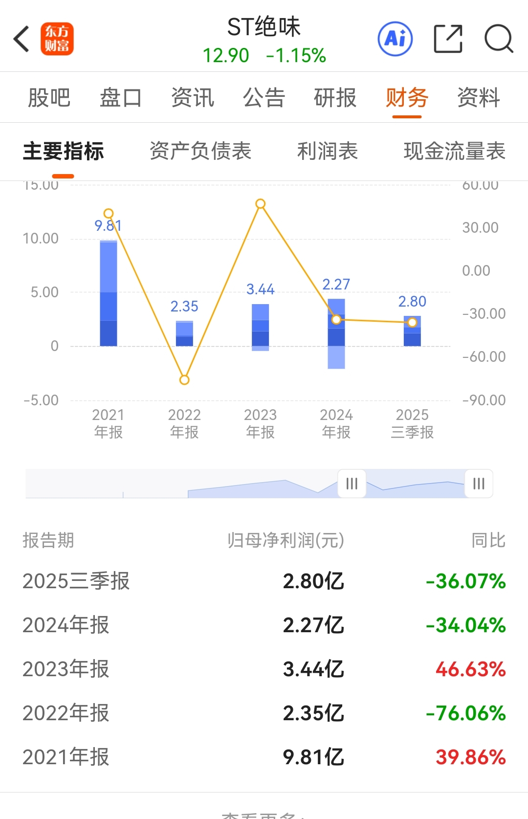 $ST绝味(SH603517)$ 每年赚钱,为啥ST了?