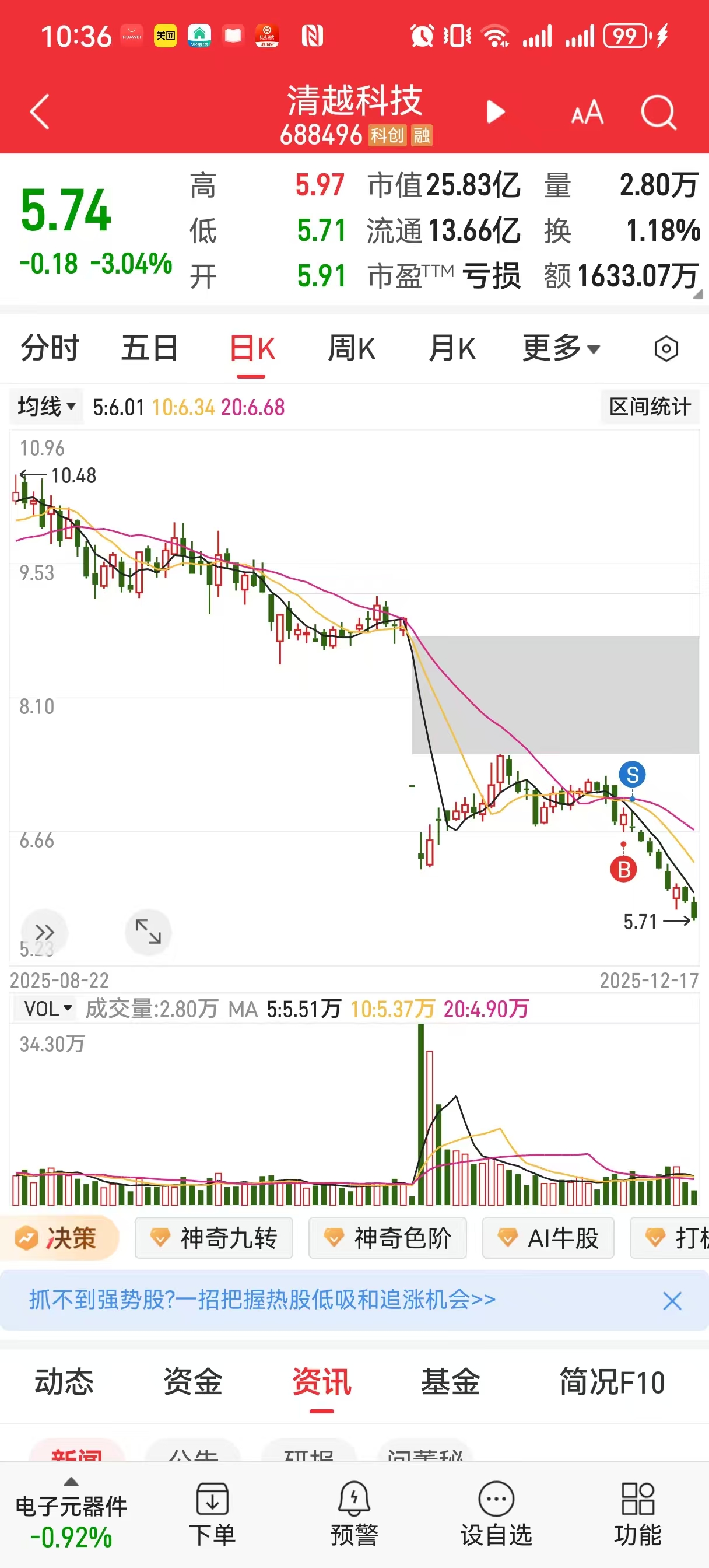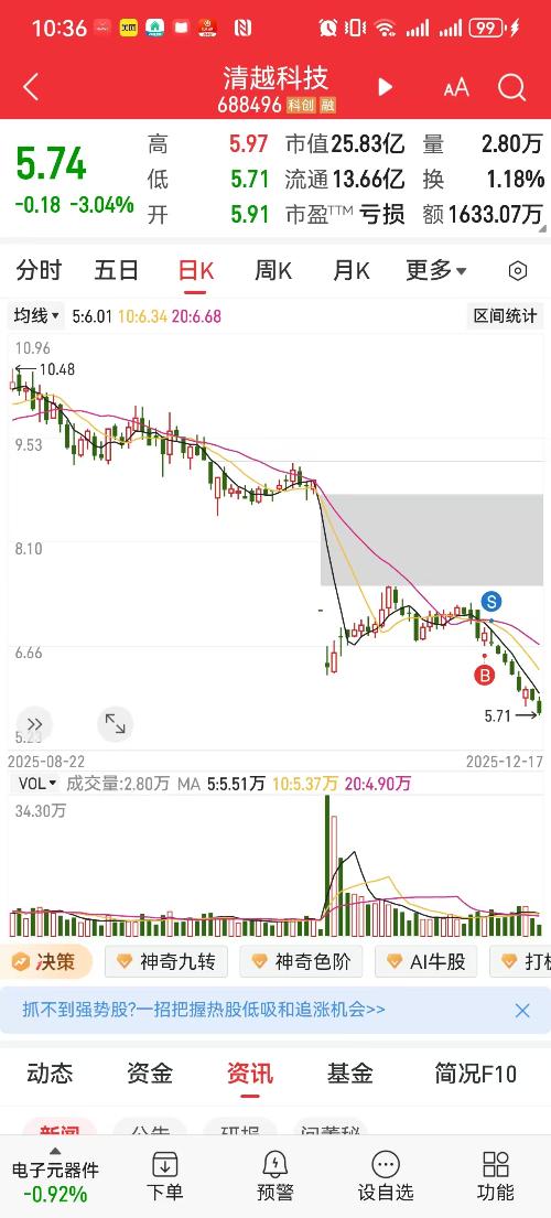 破新低,继续下探,小盘股,电子元器件,等待底部确认,忍耐中。