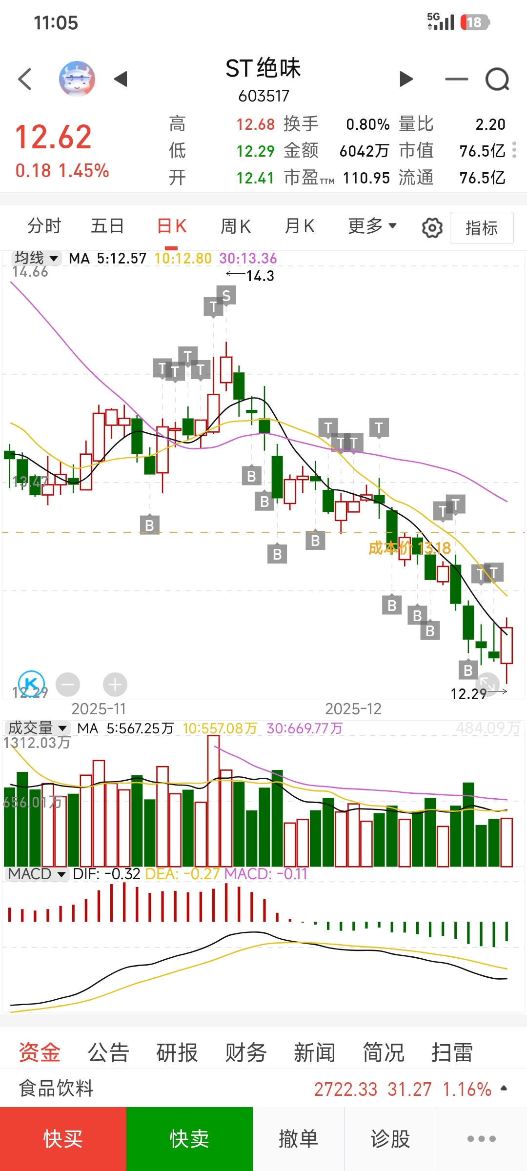 $ST绝味(SH603517)$ 公司给我发点鸭脖吧,我亏麻了,指望你们给我发点鸭脖安慰一下,搞点赠品也行