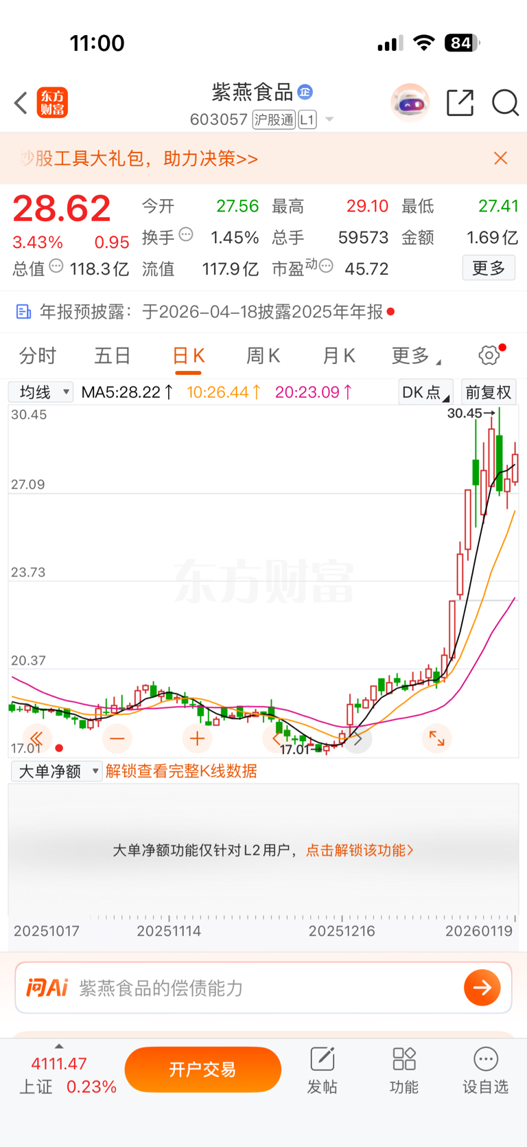 $ST绝味(SH603517)$ 看看紫燕食品,往上冲!