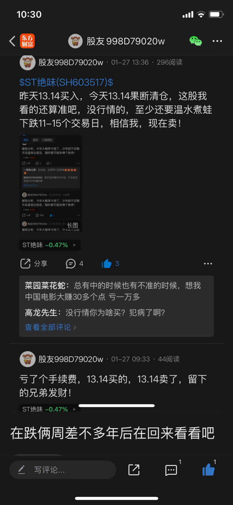 温馨提示: 1.根据《证券法》规定,禁止编造、传播虚假信息或者误导性信息,扰乱证券市场;2.用户在本社区发表的所有资料、言论等仅代表个人观点,与本网站立场无关,不对您构成任何投资建议。用户应基于自己的独立判断,自行决定证券投资并承担相应风险。《东方财富社区管理规定》