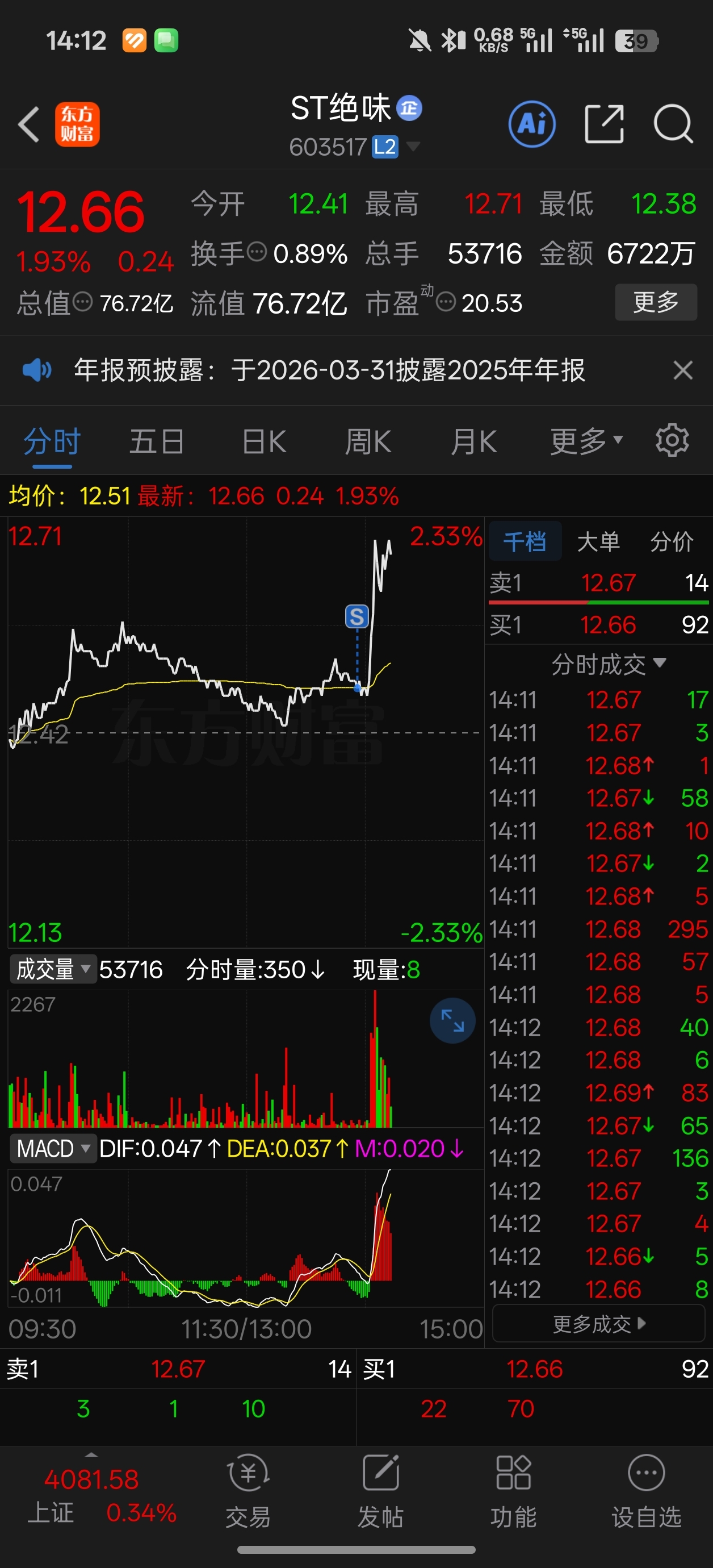 $ST绝味(SH603517)$ 因为我割了,所以他涨了
