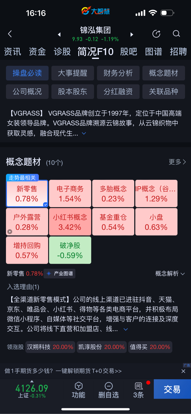 $锦泓集团(SH603518)$ 各种概念,庄稼我就服你 割肉走了 你牛