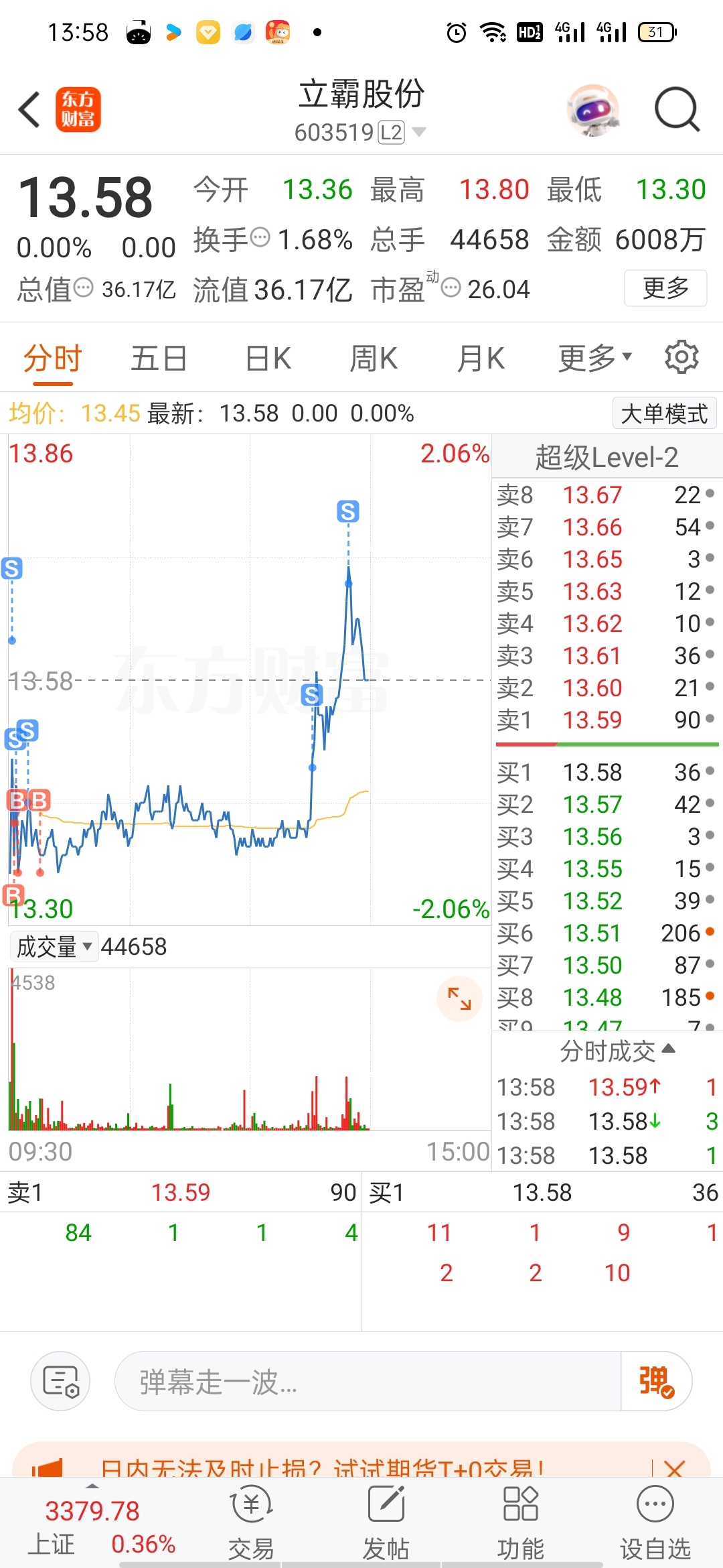 $立霸股份(SH603519)$ 13.58分13.58元,收盘15元