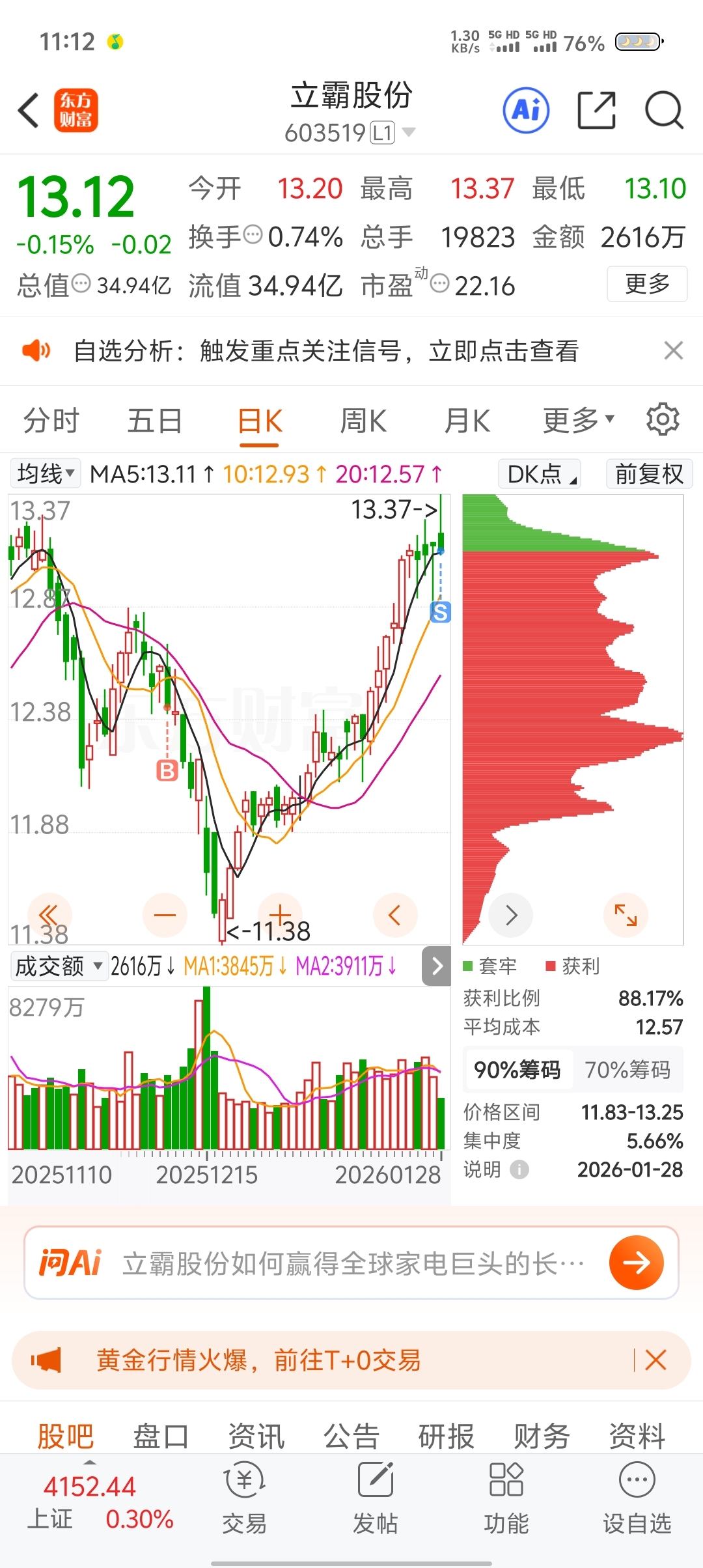 $立霸股份(SH603519)$ 挺好的票,上涨乏力,先走了