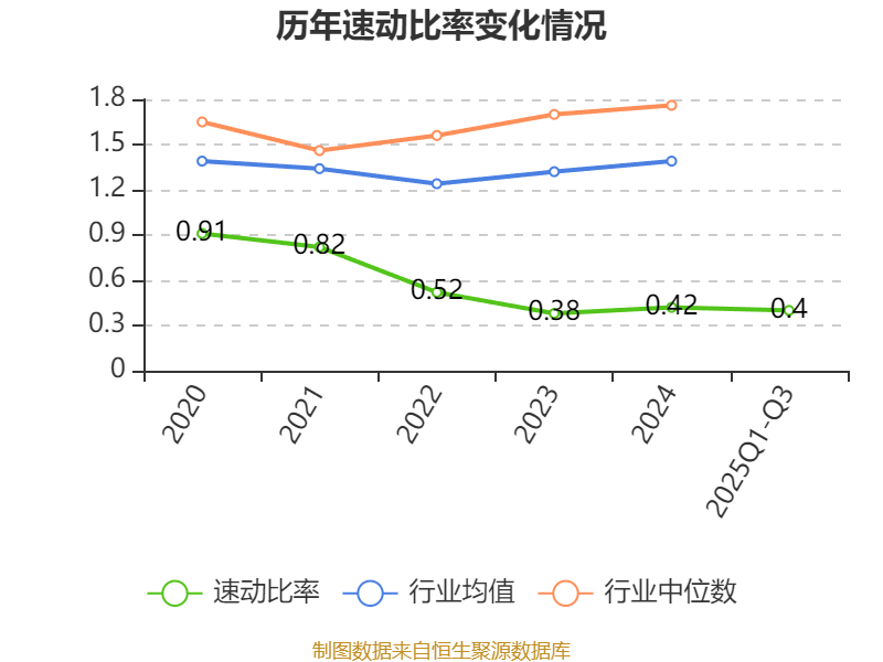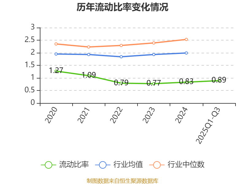2025年前三季度,公司流动比率为0.89,速动比率为0.4。