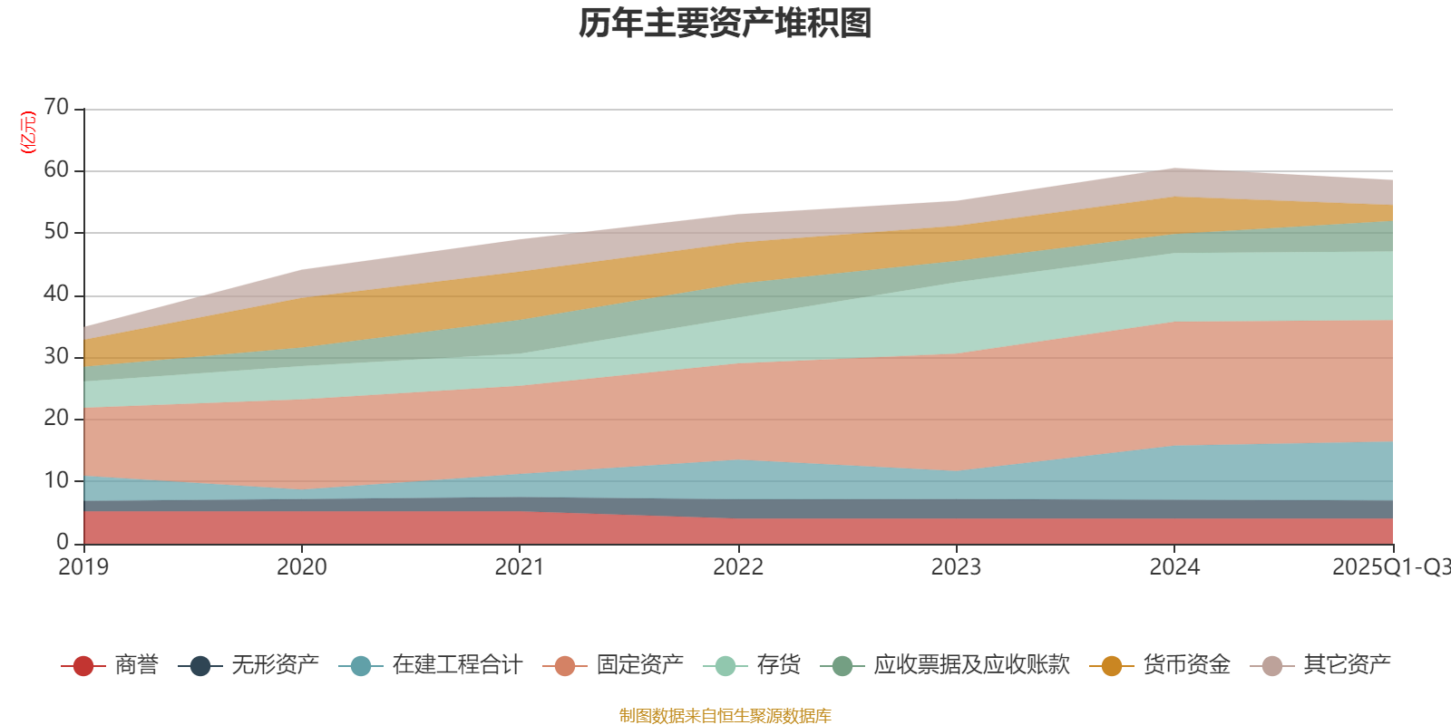 资产重大变化方面,截至2025年三季度末,公司货币资金较上年末减少57.29%,占公司总资产比重下降5.58个百分点;应收票据及应收账款较上年末增加61.24%,占公司总资产比重上升3.37个百分点;在建工程合计较上年末增加8.78%,占公司总资产比重上升1.79个百分点;应收款项融资较上年末减少56.72%,占公司总资产比重下降1.2个百分点。