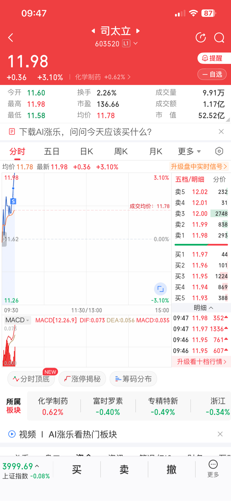 $司太立(SH603520)$ 12块卖丢了不要再下来啊
