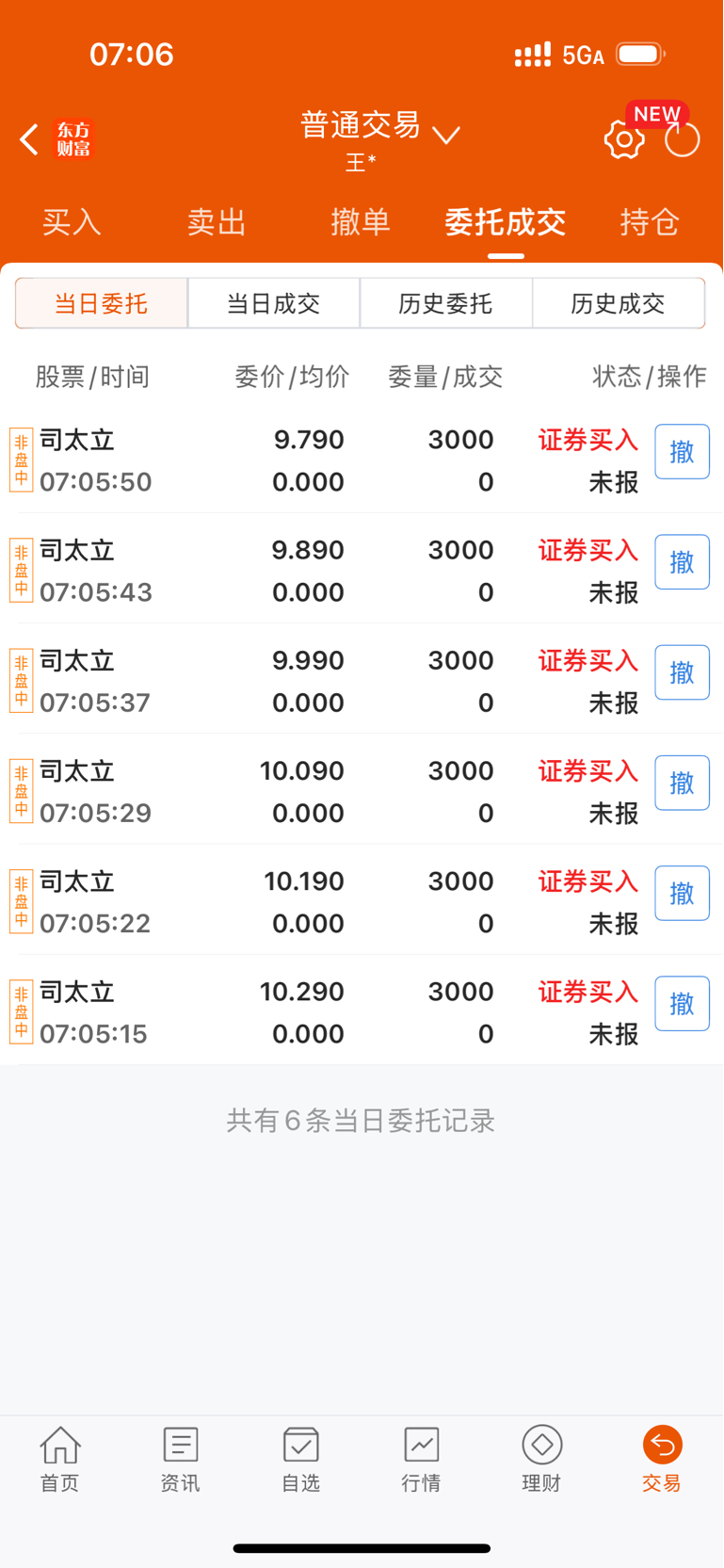 虽然感觉今天会涨,但是外部条件不太好,而且这个主力操盘手经常不按常理出牌,所以还是挂一些买盘吧