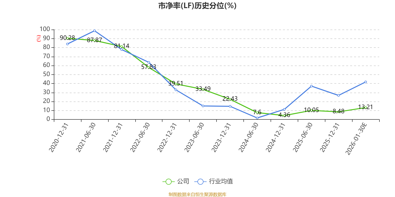 市盈率、市净率为负时,不显示当期分位数,会导致折线图中断。