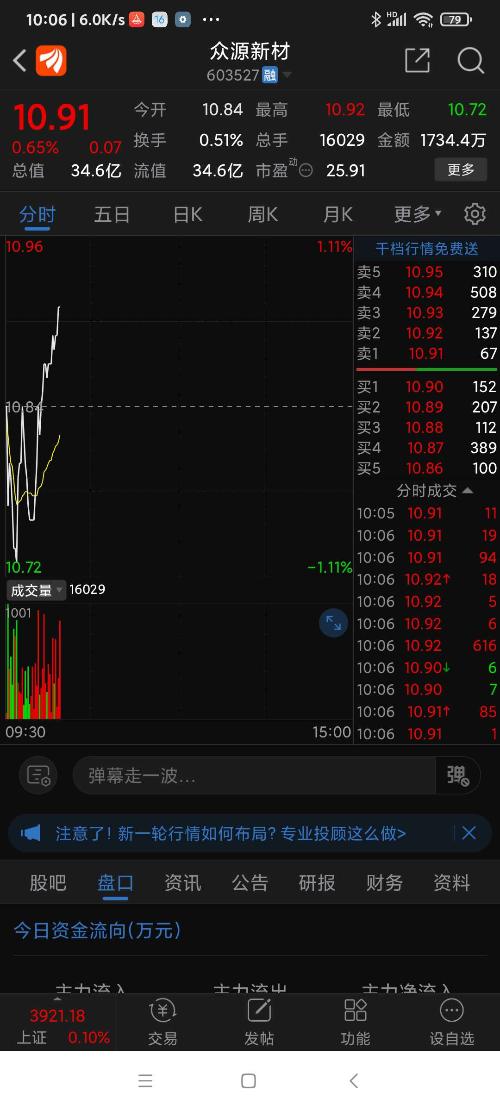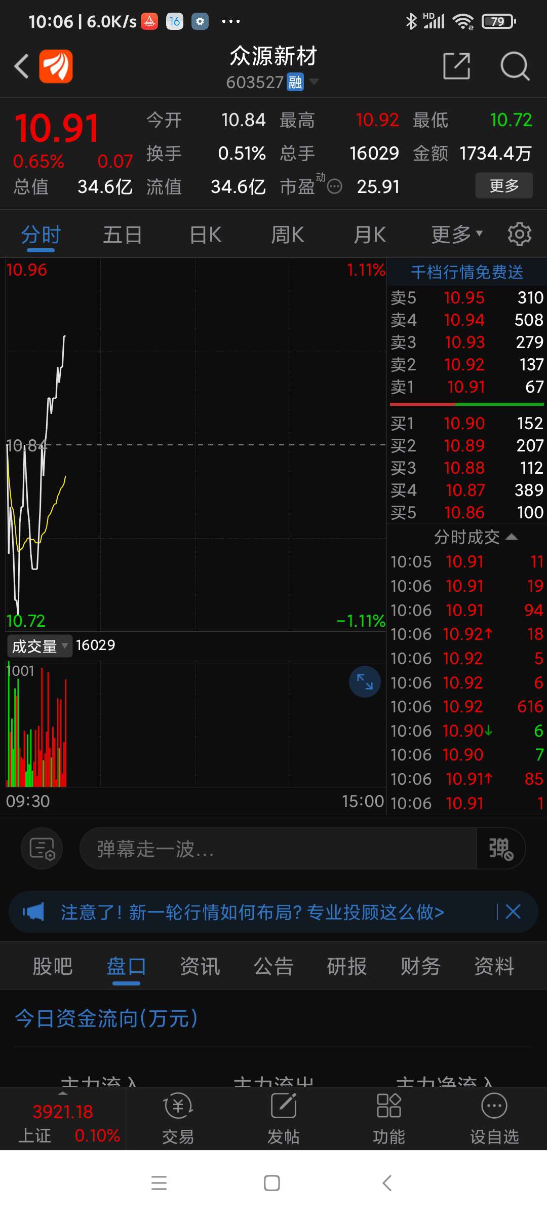 今天T+0没卖到最高价,明天继续低吸,今天庄家成本在10.80元左右